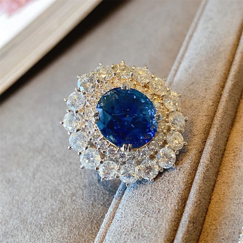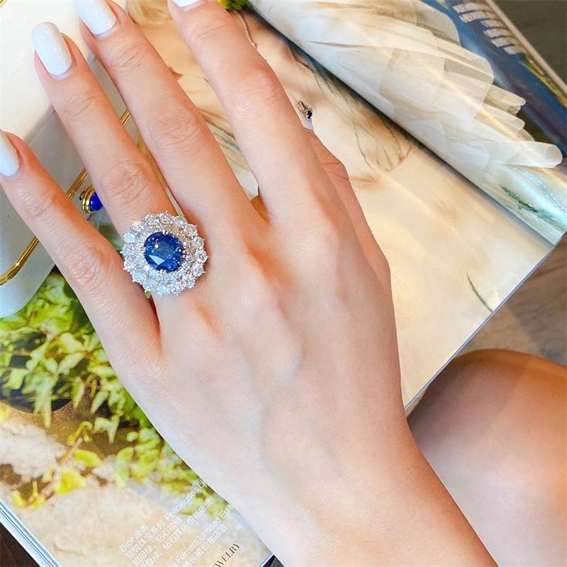 Bright blue gemstones are inlaid with diamond ring fingers. quantity