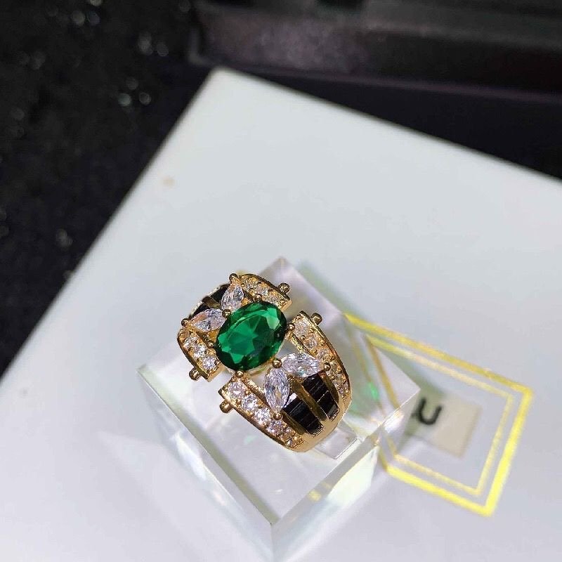 Emerald diamond zircon ring