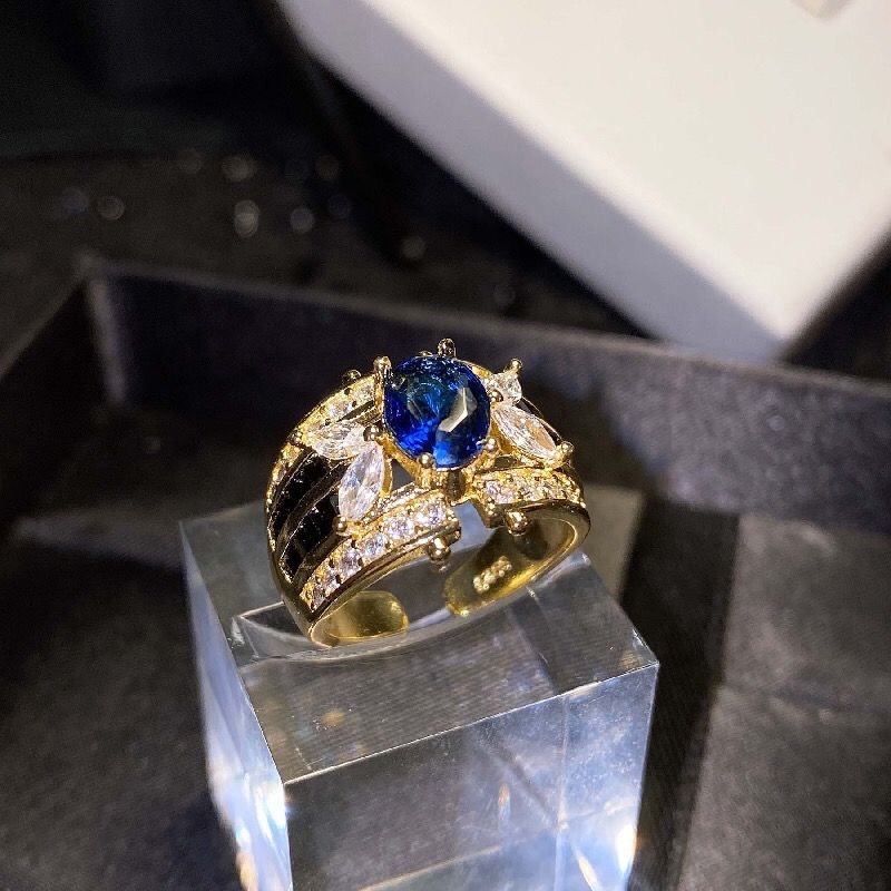 Sea blue water drop pigeon eggs silver high-grade sense ring