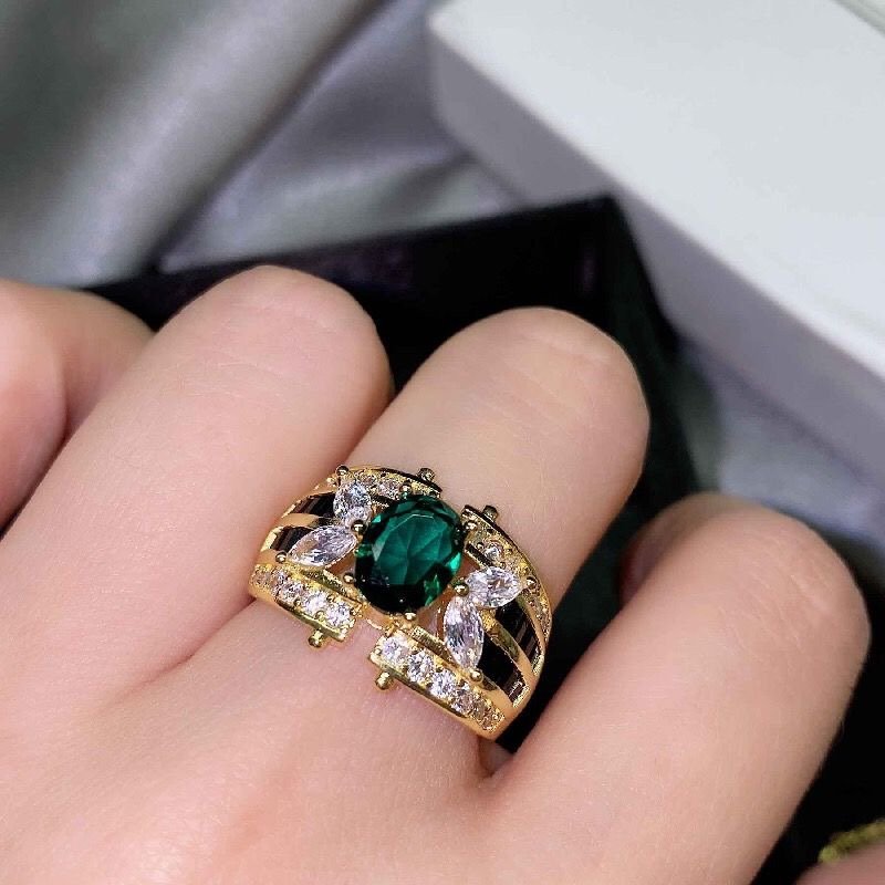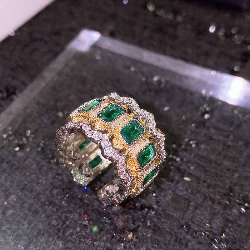 Design an emerald ring carved with lace quantity