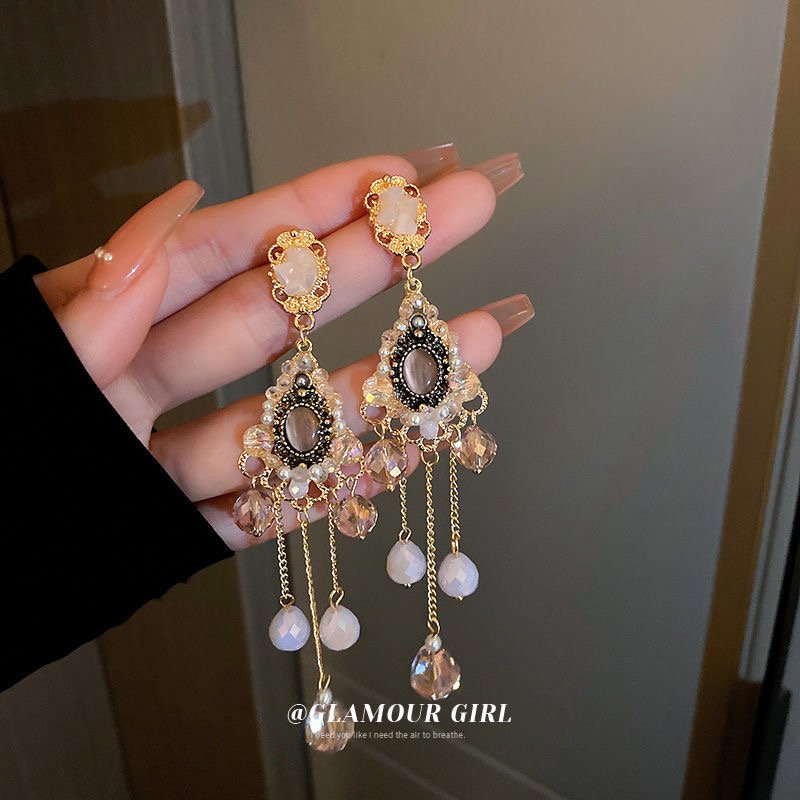 Silver Needle Heavy Industry Elliptic Zircon Earrings French