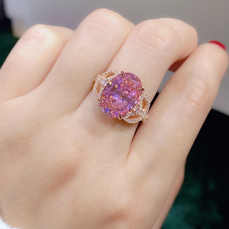 Pink diamond S925 sterling silver ring plated with rose gold quantity