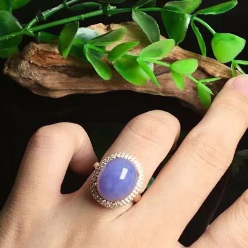 Purple chalcedony inlaid S925 silver ring