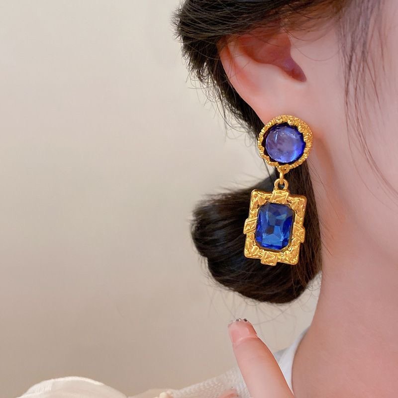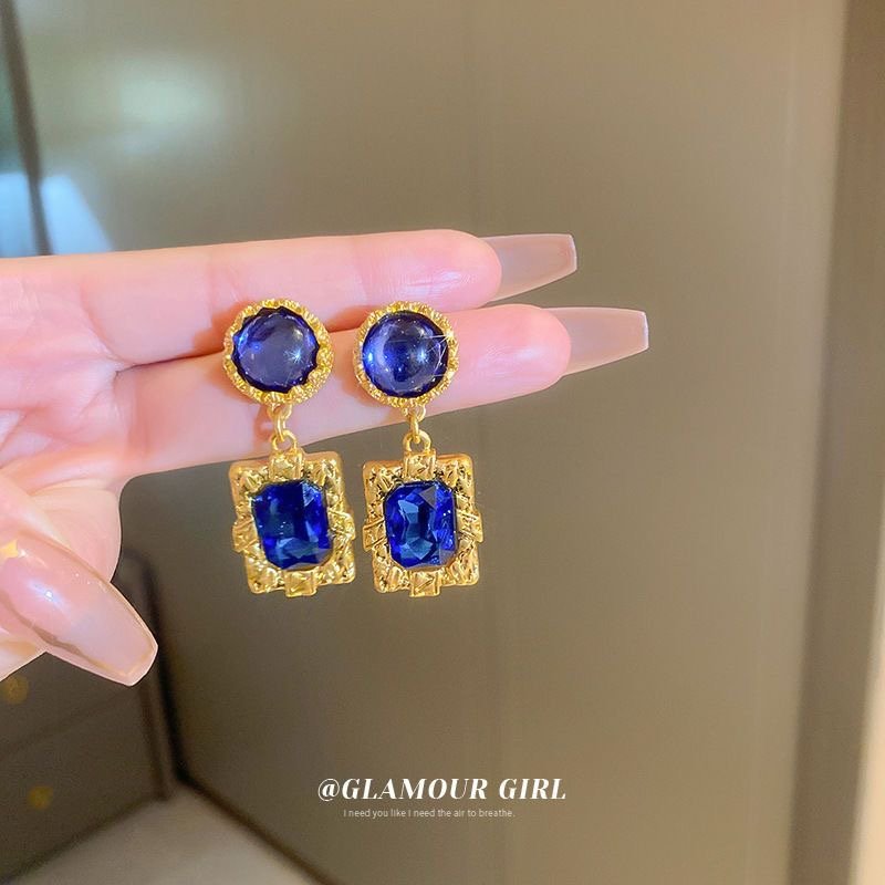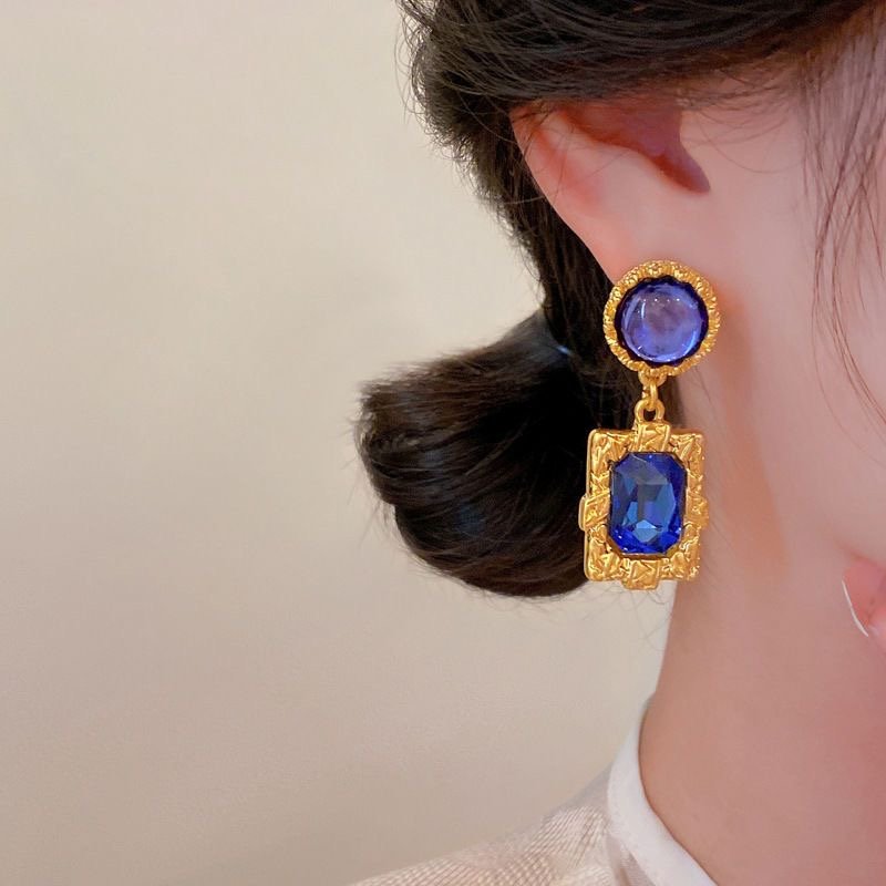 Luxury purple gemstone full rhinestone ultra-shiny earrings